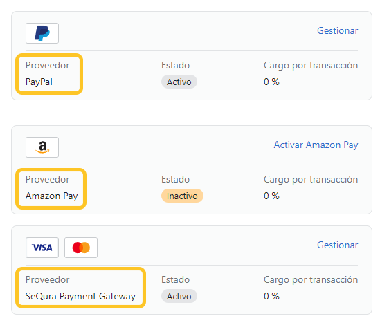 Por otro lado, tienes que vincular los métodos de pago de tu tienda. Para ello debes de ir a tu tienda y ver cómo está puesto en la pantalla de pagos y ponerlo de la misma forma.